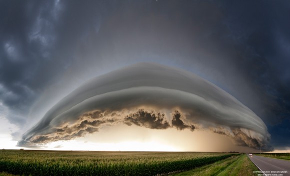 مظهر مذهل لا يصدق لسحابة القوس ظهرت في نبراسكا و هي عاصفة تتكون من مزيج مدهش من هيكل عاصفة كبيرة وإضاءة مثالية مع شمس وراء العاصفة .