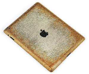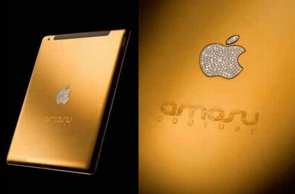 اعلنت شركة "جولد آند كو" انها تعتزم اطلاق جهاز ايباد مغلفا بذهب عيار 24 قيراط فى مزاد علنى ليكون هذا الجهاز هو اعلى اجهزة شركة ى آبل على مستوى العالم. واكدت الشركة ان المزاد سيبدأ بسعر 550 دولار وسيُعرض الجهاز المذهب على مجموعة قليلة قى الإمارات ثم سيتم عرضه فى محلات داماس بدبى مول ، وذكرن صحيفة " سفن دايز". ان الشركة تلقت من العديد من الطبات للدخول فى هذا المزاد وانه سيتم التبرع بقيمة الجهاز لصالح جمعية خيرية ، كما ستعرض الشركة جهاز بلاكبيري مغلفا بذهب عياره 24 قيراطا إضافة إلى جهاز آيفون.